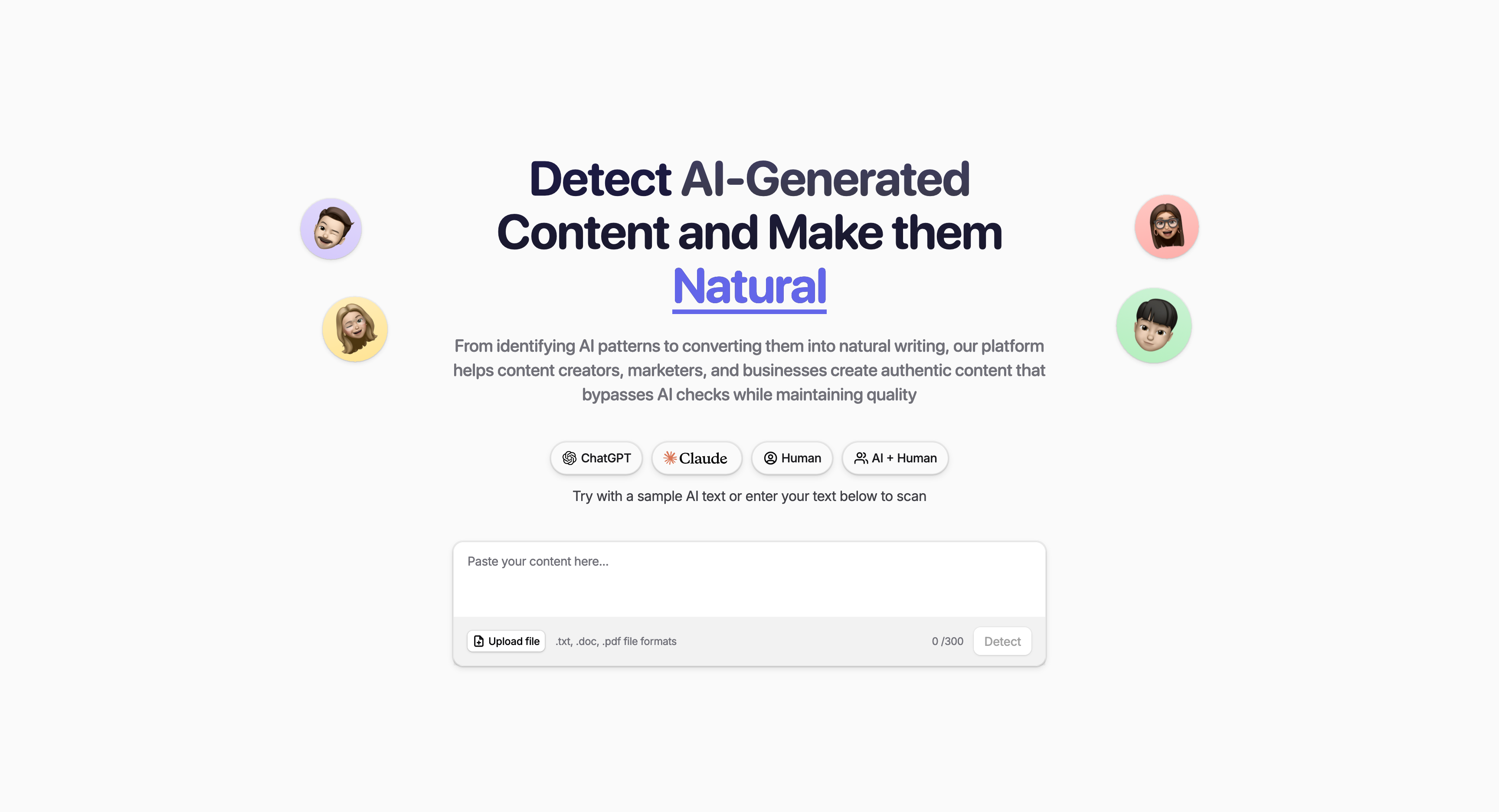 Upload or paste your text to begin the transformation process. Detect.ai works seamlessly with any document format.